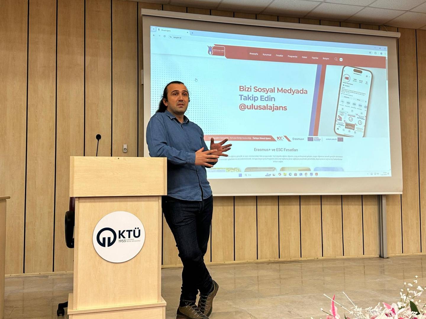 Karadeniz Teknik Üniversitesi’nde, öğrencilerin uluslararası fırsatlar konusunda farkındalığını arttırmak amacıyla düzenlenen bilgilendirme etkinliği ilgiyle karşılandı. Etkinlik kapsamında Dış İlişkiler Genel Koordinatörlüğünden Öğr. Gör. Zehra Şahin Bektaş ve Dr. Öğr. Üyesi Fatih Yılmaz, katılımcılara Avrupa Birliği Gençlik Programları ve proje yazma süreçleri hakkında kapsamlı bilgiler sundu. Sunumlarda Erasmus+ Gençlik Değişimleri, Avrupa Dayanışma Programı, DiscoverEU ve Gençlik alanındaki diğer hareketlilik fırsatları ele alındı. Programların hedefleri, başvuru koşulları, gençlere sağladığı kazanımlar ve uluslararası öğrenme deneyimleri detaylı biçimde aktarıldı. Etkinlikte ayrıca, 2026 yılı Erasmus+ Gençlik Programları için son başvuru tarihinin 12 Şubat 2026 (Brüksel saatiyle) olduğu hatırlatılarak öğrencilerin bu tarihe kadar projelerini hazırlamaları gerektiği belirtildi. Etkinliğin bitiminde öğrenciler, merak ettikleri konular hakkında sorular yönelterek programlara başvuru süreçleri konusunda birebir danışmanlık alma fırsatı buldular.