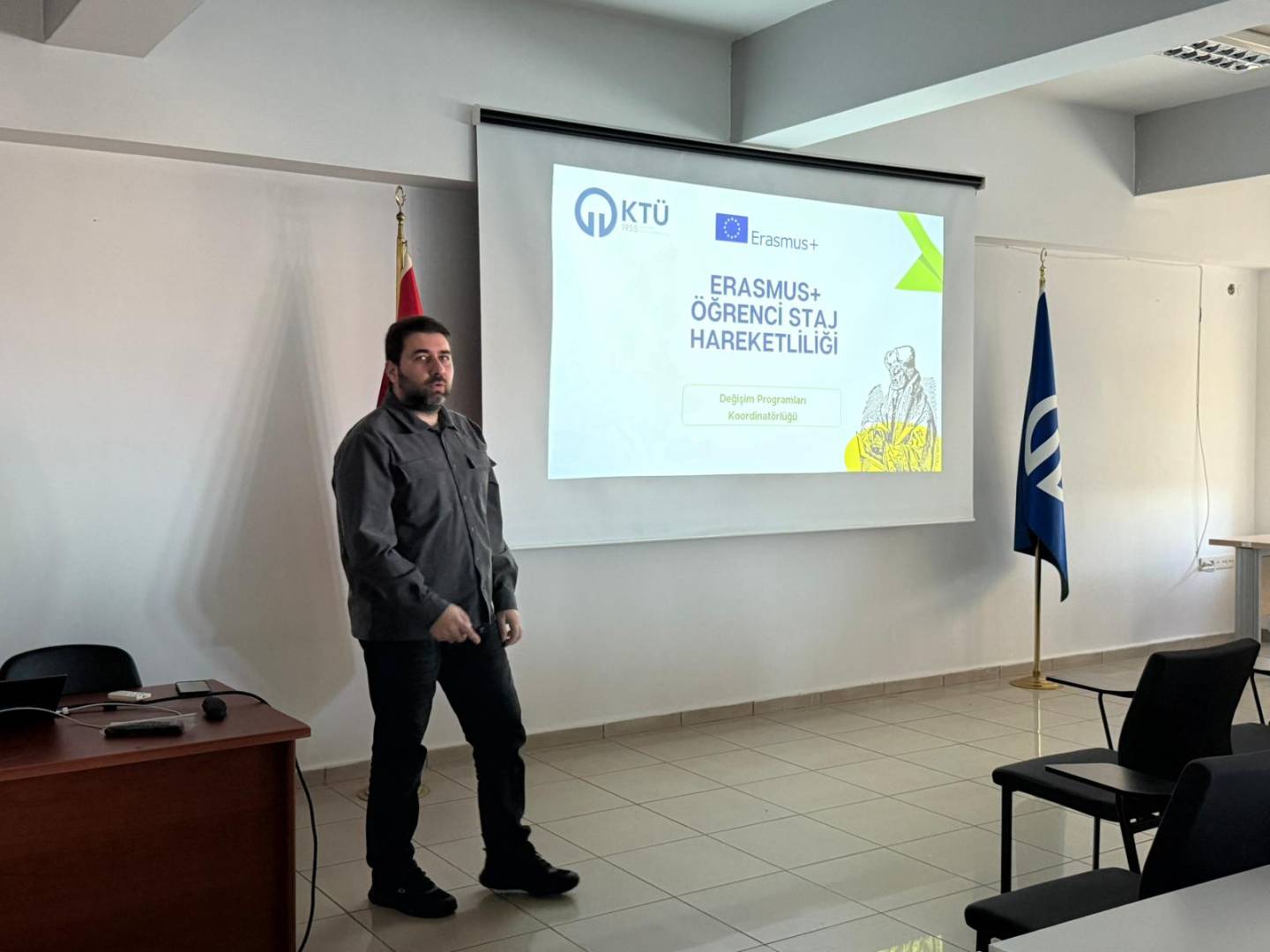 Mühendislik Fakültesi bünyesindeki Yazılım Mühendisliği ile Yapay Zeka ve Veri Mühendisliği bölümlerindeki öğrencilere yönelik olarak düzenlenen Erasmus+ tanıtım toplantısına KTÜ Değişim Programları Koordinatörlüğü olarak katılım sağladık. Düzenlenen etkinliğe koordinatörlük ekibimizden Öğr. Gör. Çiğdem HÜSEM ve Öğr. Gör. Şener KARAOSMANOĞLU konuşmacı olarak katılım sağladılar. Toplantıda Erasmus+ Öğrenci Öğrenim Hareketliliği ve Erasmus+ Öğrenci Staj Hareketliliği hakkında tanıtım sunumları gerçekleştirildi. Toplantı bitiminde öğrencilerin soruları cevaplandı. Başta toplantıya bizleri davet eden Yazılım Mühendisliği Bölümü öğretim üyesi Doç. Dr. Hülya DOĞAN olmak üzere toplantıya katılım sağlayan tüm öğrencilere teşekkür ederiz.