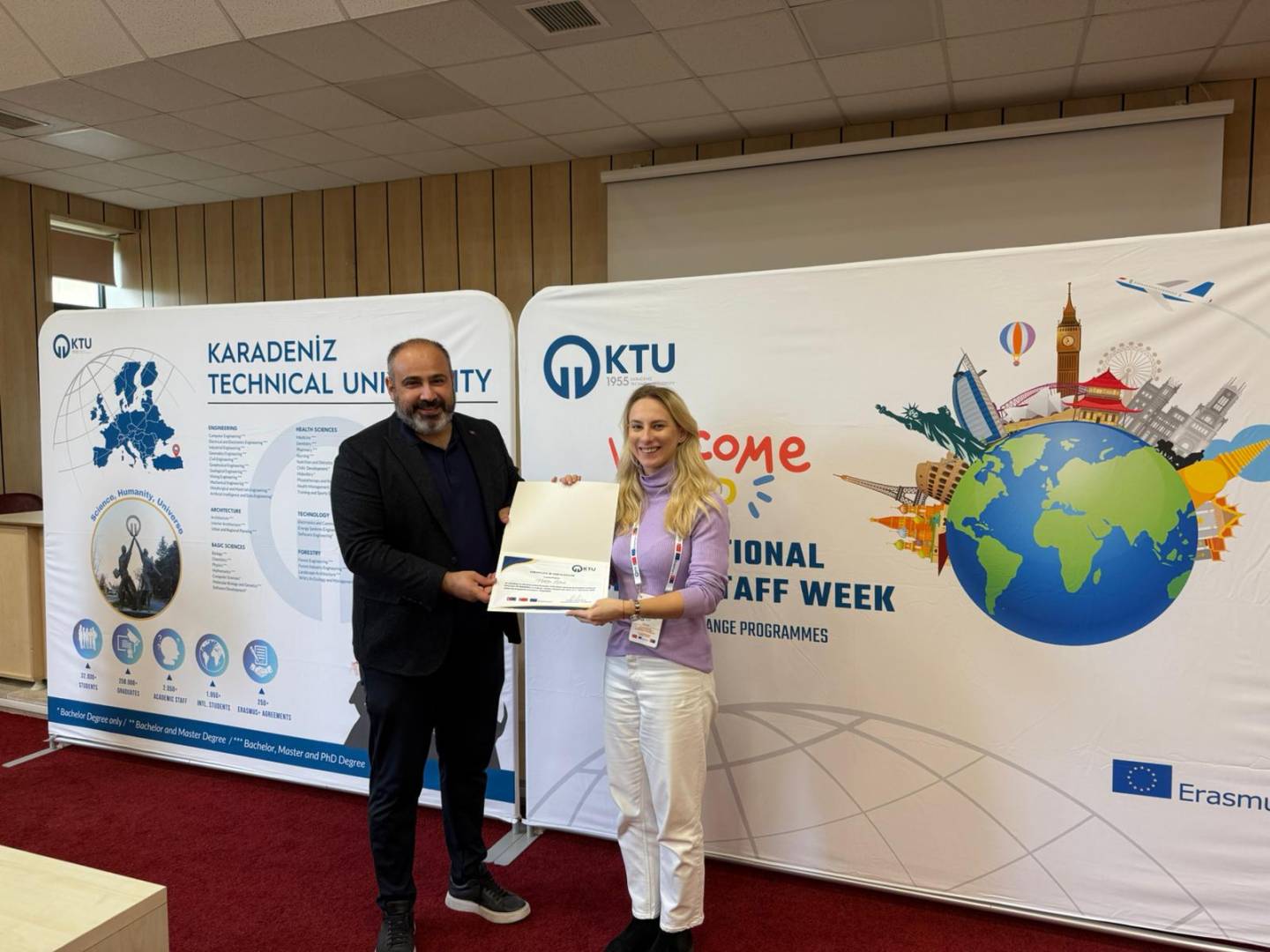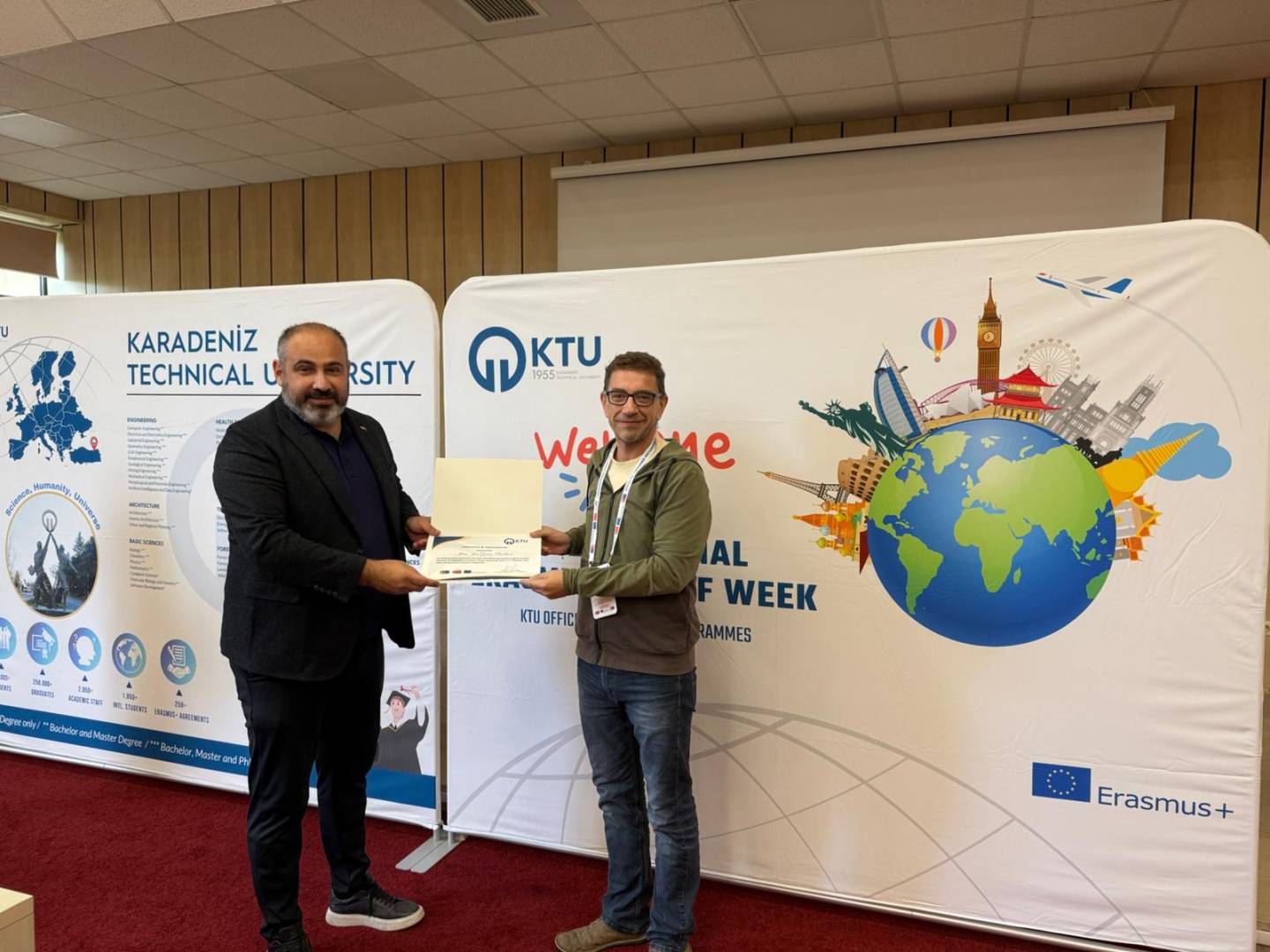 At the closing ceremony, certificates were presented to the participants by Prof. Dr. Sercan EROL, General Coordinator of International Relations at Karadeniz Technical University.