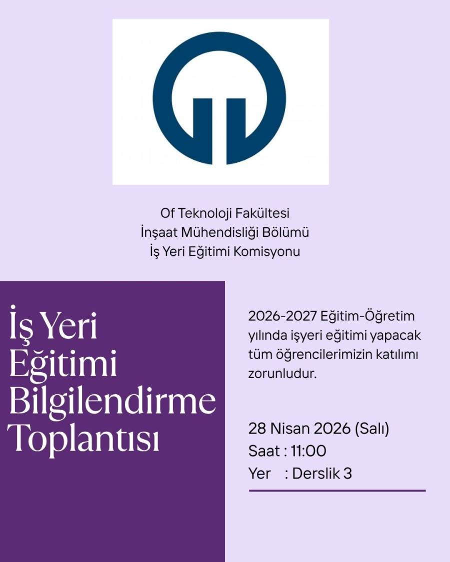 İşyeri eğitimi yapacak tüm öğrencilerimizin katılımı zorunludur.