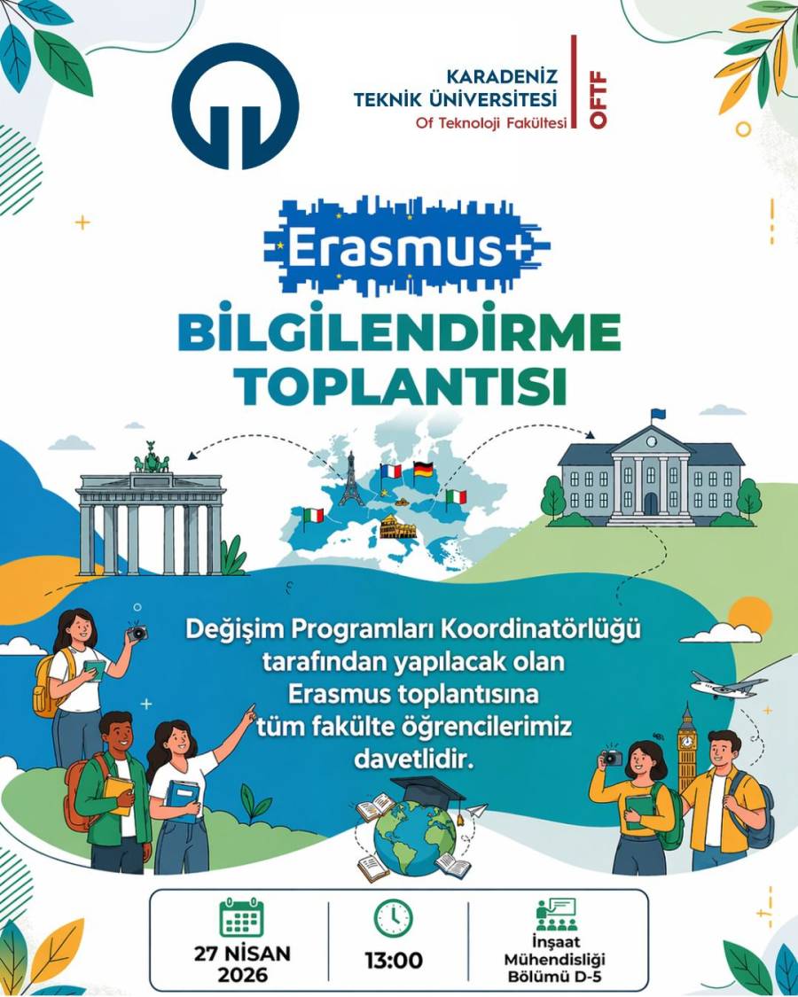 Erasmus bilgilendirme toplantısına tüm fakülte öğrencilerimiz davetlidir.
