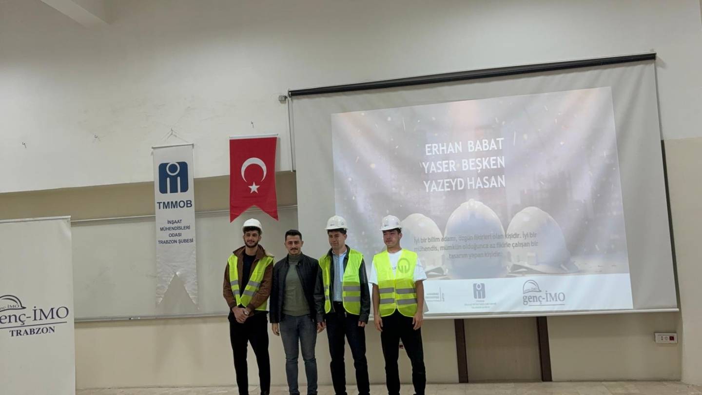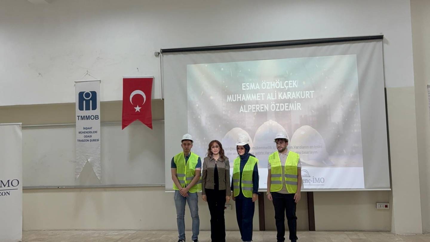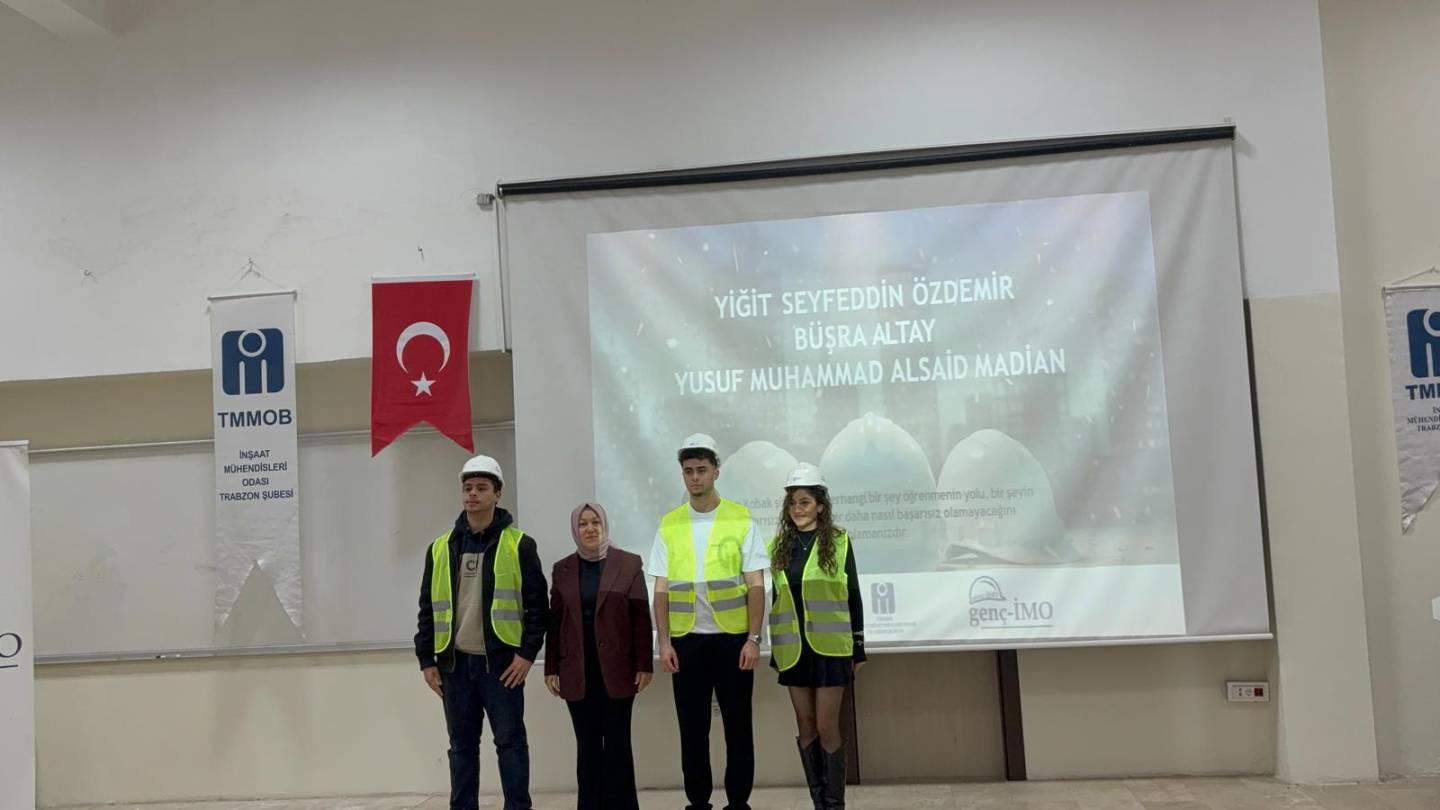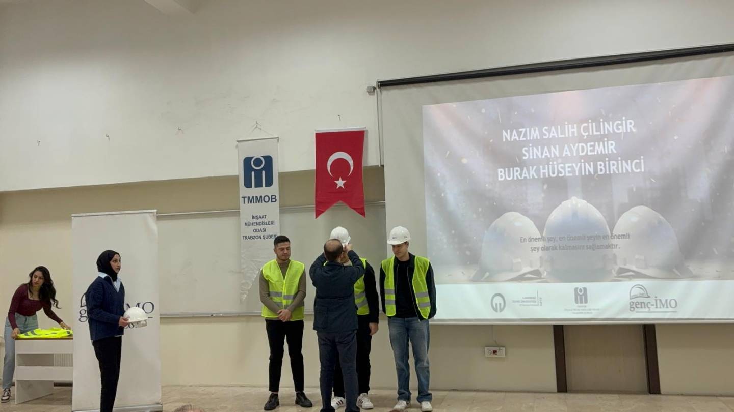 İMO Trabzon Şubesi Yönetim Kurulu Üyesi Zehra Gül Turhan inşaat mühendisi olmanın sorumluluğu ve önemine dair kısa bir konuşma gerçekleştirmiştir. Etkinlik 1.sınıf öğrencilerine baret takılmasıyla tamamlanmıştır.
