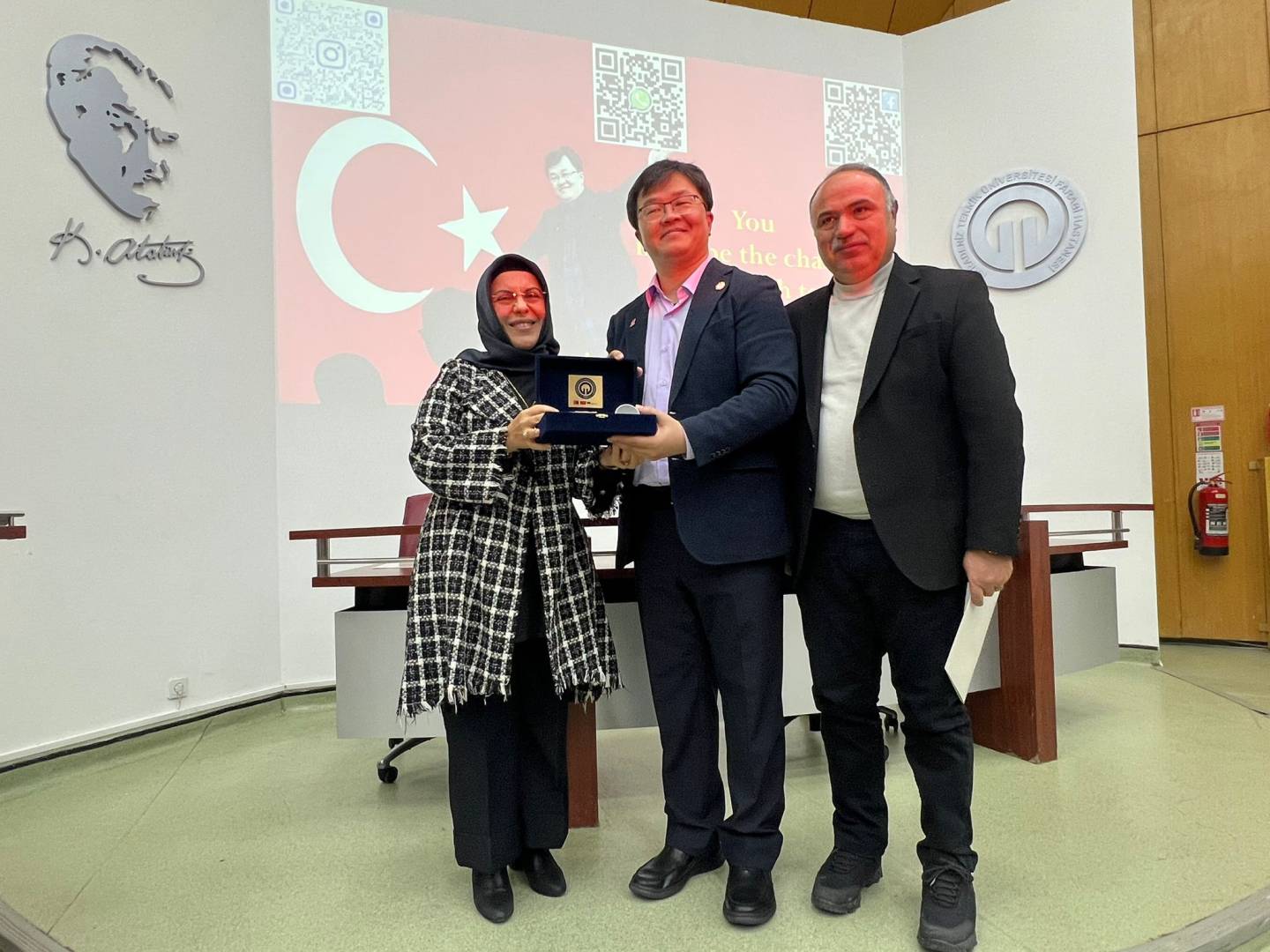 The seminar entitled as "AI-Driven Medical Decision Science for Next-Generation Healthcare Delivery." was held in the Aydın Inal Lecture Hall of the Medicine Faculty of Karadeniz Technical University on October 30, 2025 by the mutual organization of Office of International Relations, Graduate School of Health Sciences and Faculty of Medicine. The speaker of the seminar was Prof. Dr. Chi-Chang Chang, an academic staff member at Chung Shan Medical University in Taiwan and president of the Society for Asia Medical Decision Science (SAMDS). At the end of the seminar, Prof. Dr. Chi-Chang Chang was presented with a plaque by Prof. Dr. Sevdegul AYDIN MUNGAN, Dean of the Faculty of Medicine, and a certificate of participation was delivered to him by Prof. Dr. Sedat BOSTAN, Director of the Graduate School of Health Sciences. General Coordinator of International Relations Prof. Dr. Sercan EROL and Lect. Zehra SAHIN BEKTAS from the team Office of Exchange Programmes also attended the event.