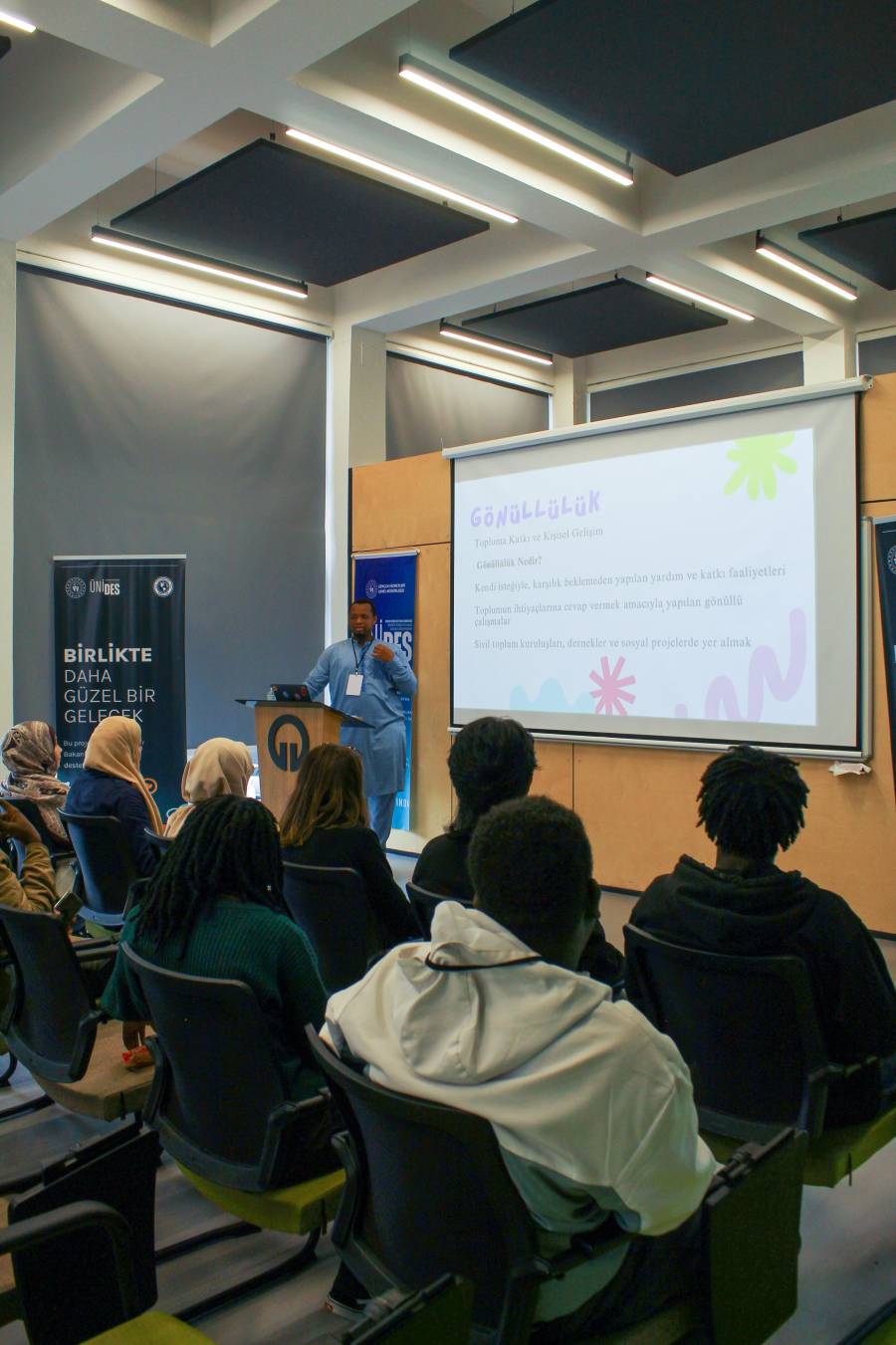 As part of the volunteer activities initiated with the support of the Ministry of Youth and Sports under the UNIDES Support Program for university student clubs, a briefing meeting was held at the Office of International Student Affairs by the members of our university’s International Student Club. Information was provided on a total of 11 project areas included and supported in the Ministry’s Youth Policy Document: Family and Values, Science and Technology, Environment and Climate, Education and Lifelong Learning, Youth Information Services, Youth Health and Sports, Volunteering, Youth Participation and Civil Society, Employment and Entrepreneurship, Social Inclusion, International Youth Studies, and Disaster Management and Resilience. The event aimed to encourage active participation of international students in volunteer-based projects and to introduce the opportunities provided through the UNİDES support program.