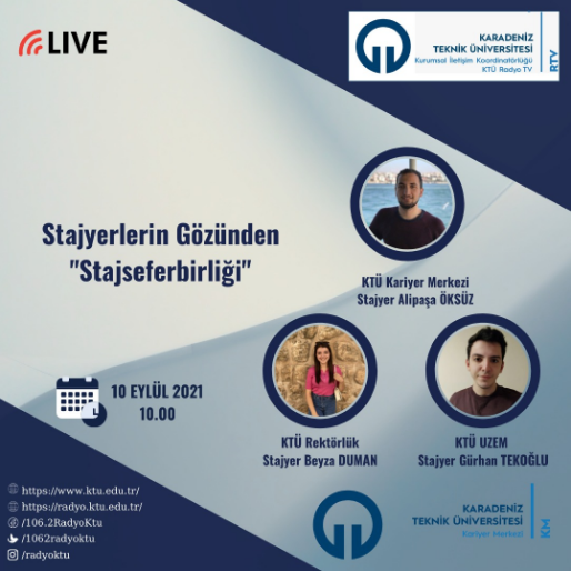 Kariyer Merkezi - Stajyerlerin Gözünden ''Stajseferberliği'' 10.09.2021 tarihinde saat 10.00'da RADYO KTÜ'de.