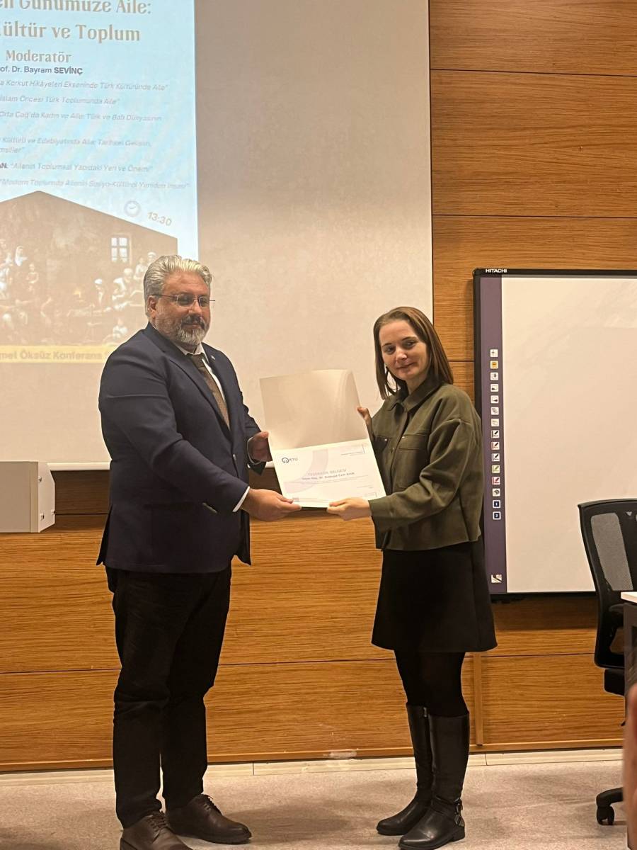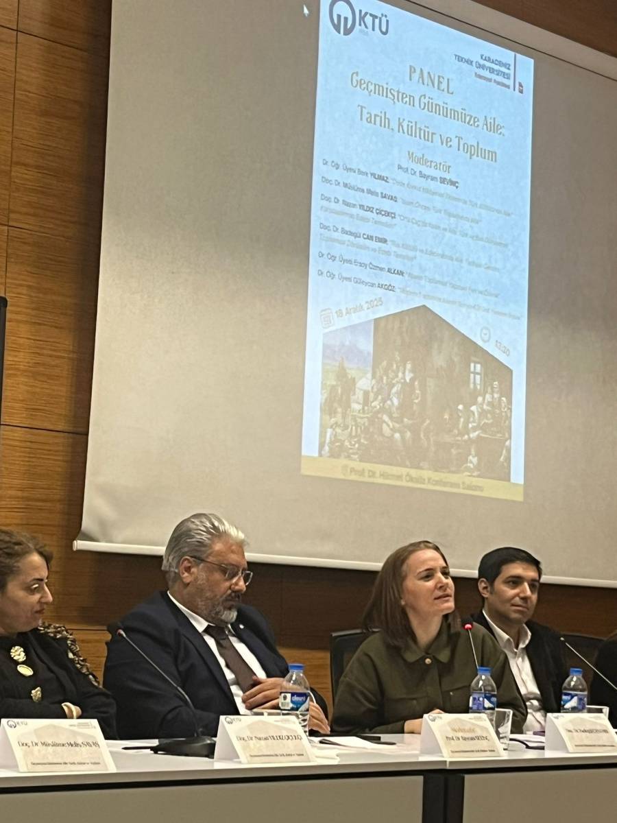 Ülkemizde 2025 yılının "Aile Yılı" ilan edilmesi vesilesiyle Edebiyat Fakültesince düzenlenen "Geçmişten Günümüze Aile" paneli, 18 Aralık 2025 Perşembe günü Edebiyat Fakültesi Prof. Dr. Hikmet ÖKSÜZ Konferans Salonu'nda gerçekleştirildi. Saat 13.30-15.00 arasında yüz yüze yapılan bu anlamlı etkinlikte, Bölümümüz Başkanı Doç. Dr. Badegül CAN EMİR, konuşmacı olarak yer aldı.