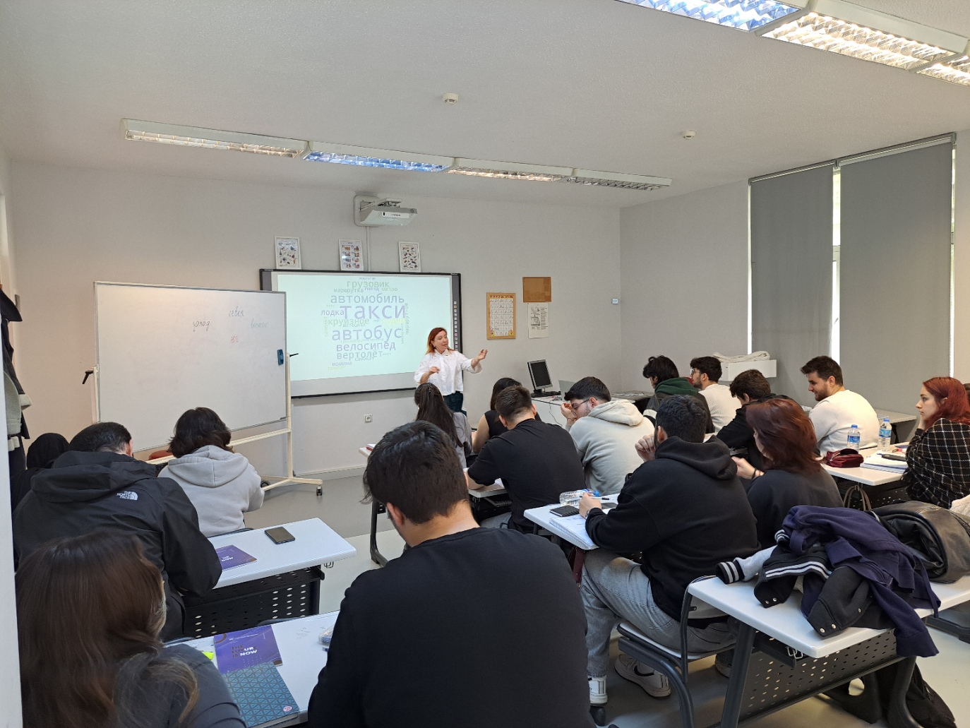 Rusçanın İkinci Dil Olarak Öğretimi alanında çalışmaları bulunan ve program çerçevesinde bizleri ziyaret etmek amacıyla Polonya’nın Jeşuv kentinden gelen meslektaşımız 8 Nisan 2025 tarihinde Bölümümüz hazırlık sınıfı öğrencileriyle bir araya geldi. Dr. Natalya JUKOVİÇ DORODNIH, öğrencilerimize “Rusçada ‘Bulunma Hali’nin Nüansları” konulu bir sunum gerçekleştirdi. Dersin sonunda öğrencilerimizin sorularını yanıtlayan JUKOVİÇ DORODNIH, Jeşuv kentini ve üniversitesini anlatarak öğrencilerimize hediyeler dağıttı. Ardından Bölümümüz öğretim üye ve elemanlarının da katılımıyla misafirlerle öğle yemeğinde bir araya gelindi.
