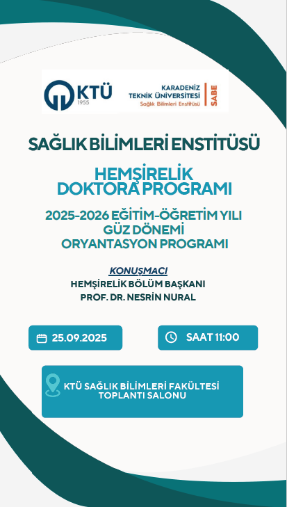 2025-2026 Eğitim Öğretim Yılı Güz Dönemi Hemşirelik Anabilim Dalı Oryantasyon Programı 25.09.2025 tarihinde saat 11.00’de düzenlenmiştir. Programda anabilim dalının akademik kadrosu ve imkânları tanıtılmış olup akademik danışmanlık, ders seçimi işlemleri açıklanmıştır. Enstitü ve Anabilim Dalı web sayfaları tanıtılmış doktora süreci anlatılmıştır. Ayrıca akademik takvim öğrencilerle paylaşılmıştır.