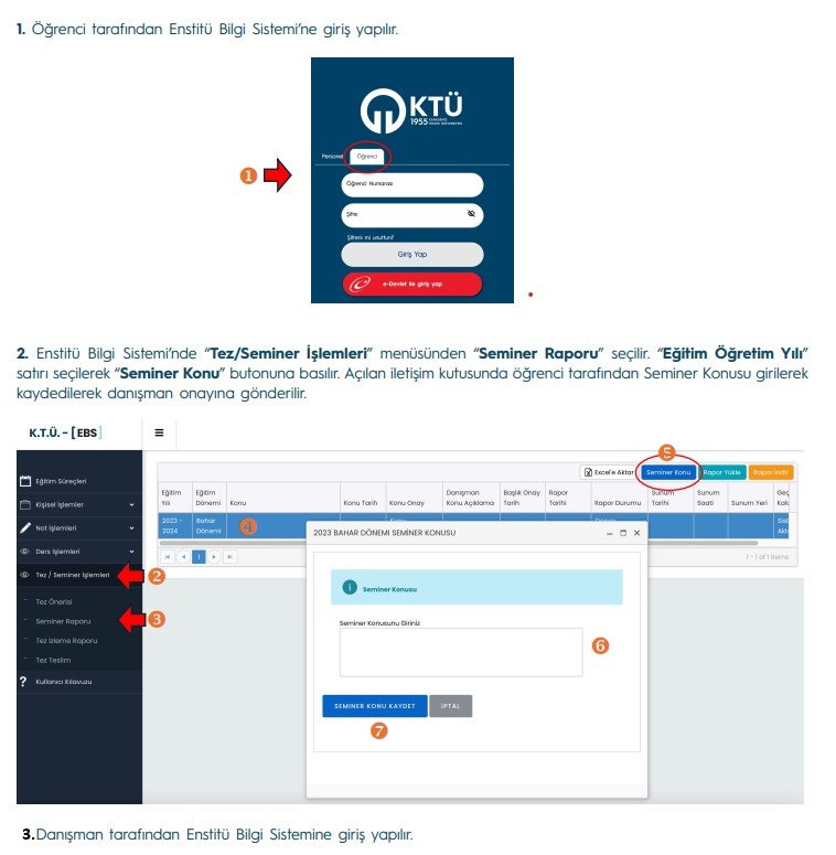 Seminer Konularının Enstitü Bilgi Sistemine Yüklenmesi Hakkında!