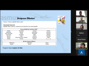 Çevrimiçi düzenlenen Erasmus+ bilgilendirme toplantısında, lisansüstü öğrenciler ve akademisyenlere öğrenim ve staj hareketlilikleri tanıtıldı.