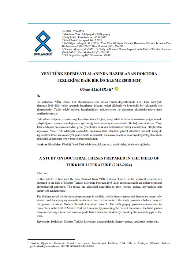 Doktora öğrencilerimizin Bilimsel Metin Üretimi-Kuram ve Uygulama dersi çerçevesinde hazırlamış oldukları çalışmalar yayınlandı.