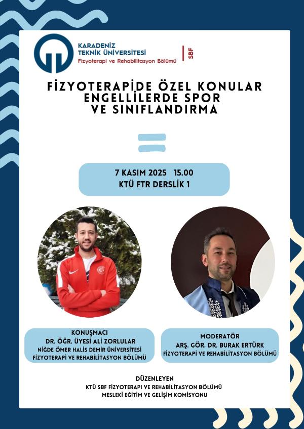 7-9 Mayıs 2025 tarihlerinde Karadeniz Teknik Üniversitesi Sağlık Bilimleri Fakültesi Fizyoterapi ve Rehabilitasyon Bölümü'nün ev sahipliğinde gerçekleşecek olan EGRAPA Conference 2025'e ait detaylı bilgilere ulaşmak için tıklayınız.