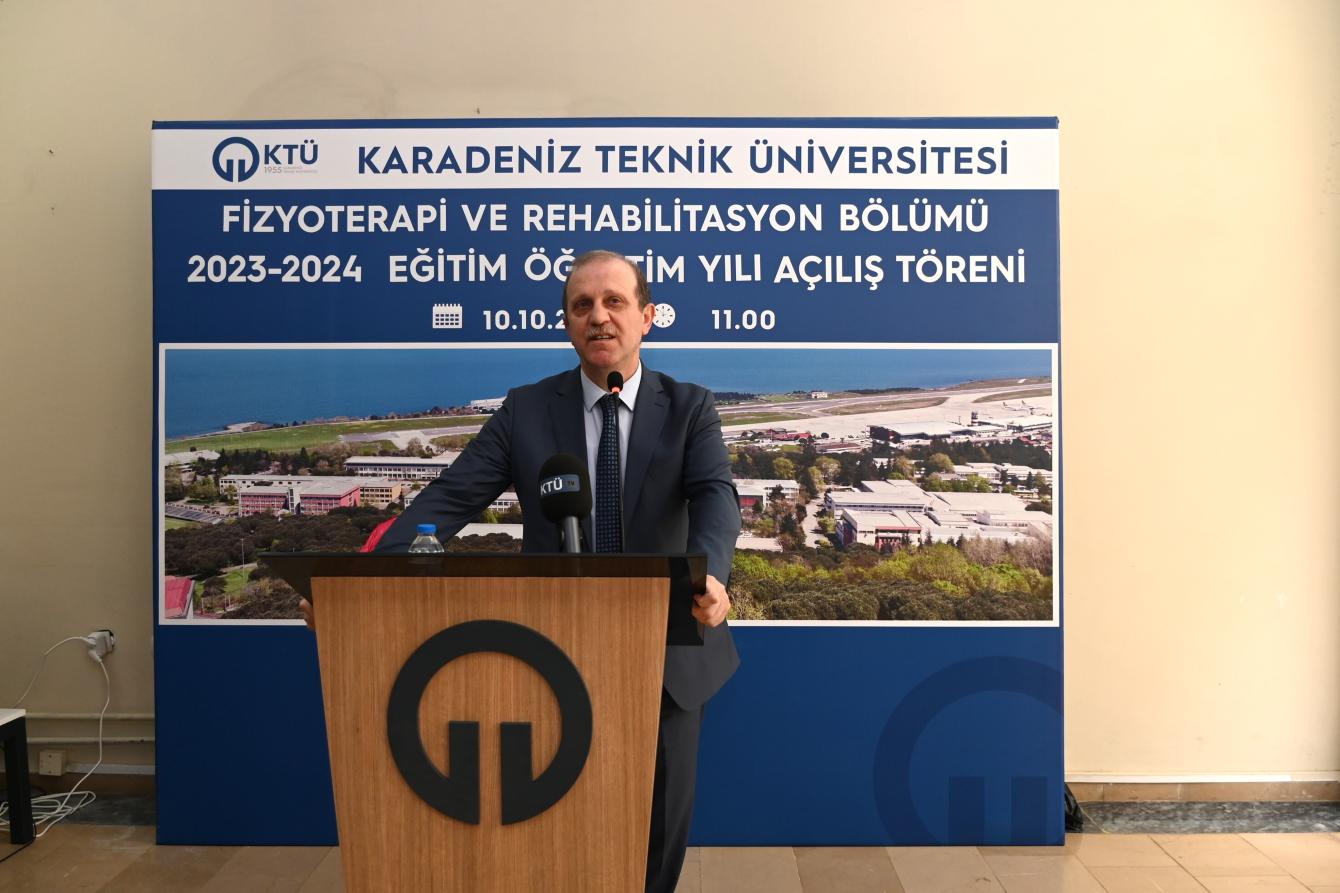 KTÜ Rektörü Prof. Dr. Hamdullah Çuvalcı törende yaptığı konuşmada KTÜ’de tarihi bir gün yaşandığını ifade ederek, “2010 yılında kağıt üzerinde kurulan bir birim bugün filiz verdi ağaç oldu. Büyük bir heyecan içerisindeyiz. Unutmayın; ‘Halk içinde muteber bir nesne yok devlet gibi, olmaya devlet cihanda bir nefes sıhhat gibi’ sağlığın önemini en iyi özetleyen söz, Kanuni Sultan Süleyman'ın bu ünlü beyitidir. Sağlığımızı önemsiyoruz ve üniversitemizde sağlık altyapısına gerekli tüm imkanları sağlıyoruz. Kadro ve bütçe veriyoruz. Yeni bölümümüzün ilk öğrencilerine seslenmek istiyorum; bir hasta size teşekkür ettiğinde, size gülümsediğinde yaptığınız mesleğin önemini daha da iyi anlayacaksınız. Gençler, sizlere ihtiyacımız var. Sizlerden şunu istiyorum; en iyi Fizyoterapist benim üniversitemden çıksın. KTÜ markasını, KTÜ logosunu sizler yükselteceksiniz. Bizde siz eğitim öğretiminize devam ederken, Fizyoterapi Bölümü’mümüze gerekli desteği vermeye devam edeceğiz. En iyi cihazlar bizde olacak, en iyi eğitim-öğretim bizde olacak. Sizleri en iyi şekilde yetiştireceğiz. Şimdiden hocalarıma da yapacakları çalışmalar için teşekkür ediyorum. Açılışımız bölgemiz, ülkemiz ve milletimize hayırlar getirmesini diliyorum” ifadelerini kullandı. Açılış, Rektör Prof. Dr. Hamdullah Çuvalcı ve beraberindekilerin bölümde bulunan laboratuvar ve sınıfları gezmesiyle son buldu.