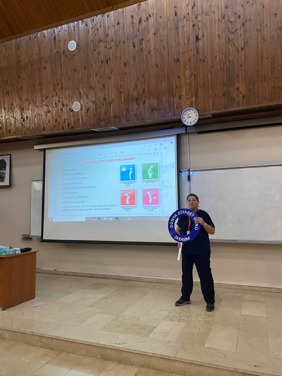 Karadeniz Teknik Üniversitesi Sağlık Bilimleri Fakültesi Hemşirelik Bölümü İç Hastalıkları Hemşireliği Anabilim Dalı HEM2057 İç Hastalıkları Hemşireliği dersi kapsamında Akçaabat Haçkalı Baba Devlet Hastanesi Diyabet Hemşiresi Doğannur AKŞAN tarafından “Diyabet ve Hasta Eğitimi” konulu bir seminer gerçekleştirilmiştir.
