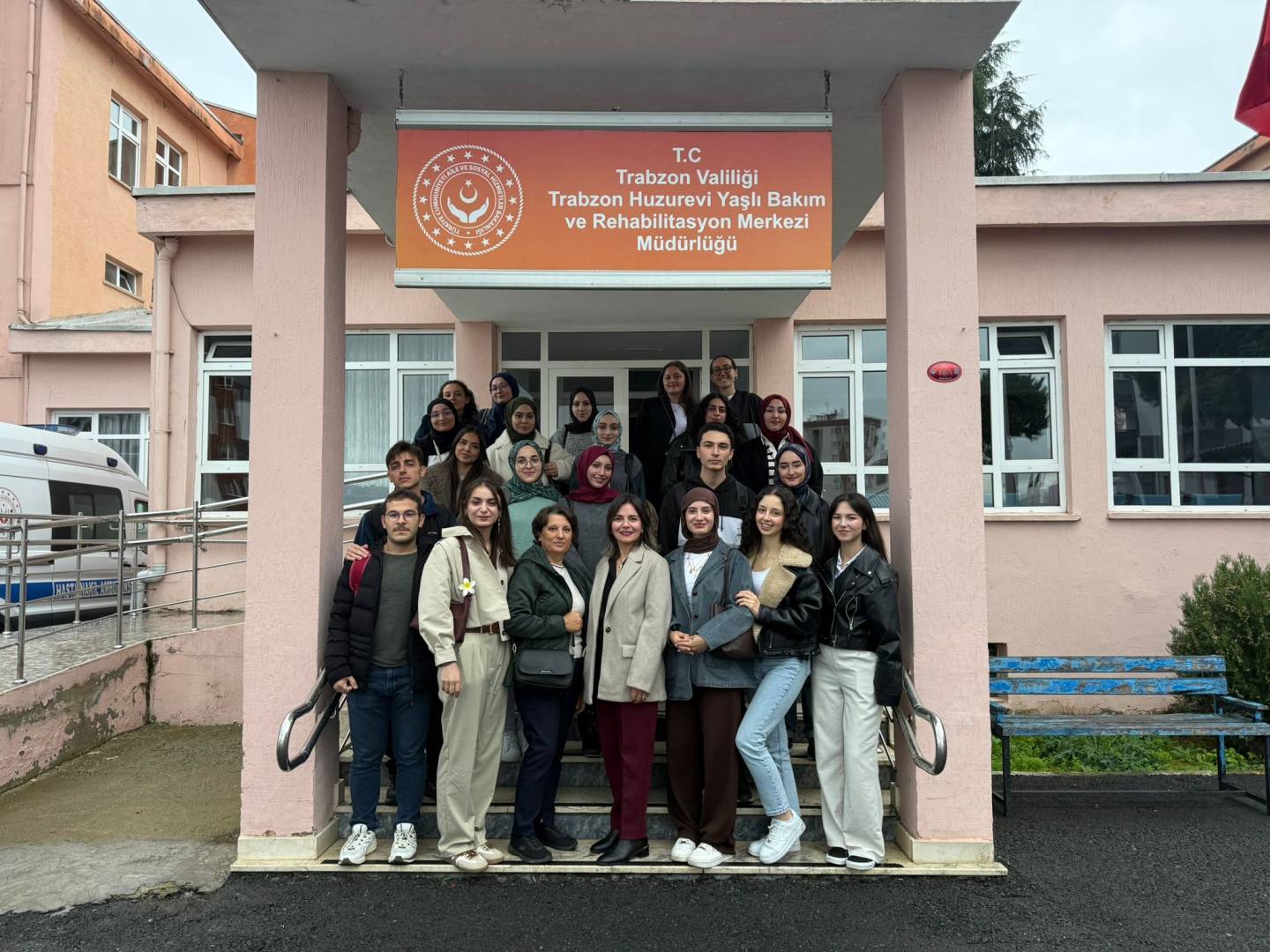 HEM2057 İç Hastalıkları Hemşireliği dersi kapsamında gönüllü olarak bir araya gelen öğrenciler, 20 Ekim 2025 tarihinde Trabzon Huzurevi Yaşlı Bakım ve Rehabilitasyon Merkezi'ni ziyaret ederek yaşlılarımıza moral verdi ve mesleki bilgi birikimlerini sosyal sorumluluk bilinci sergiledi.