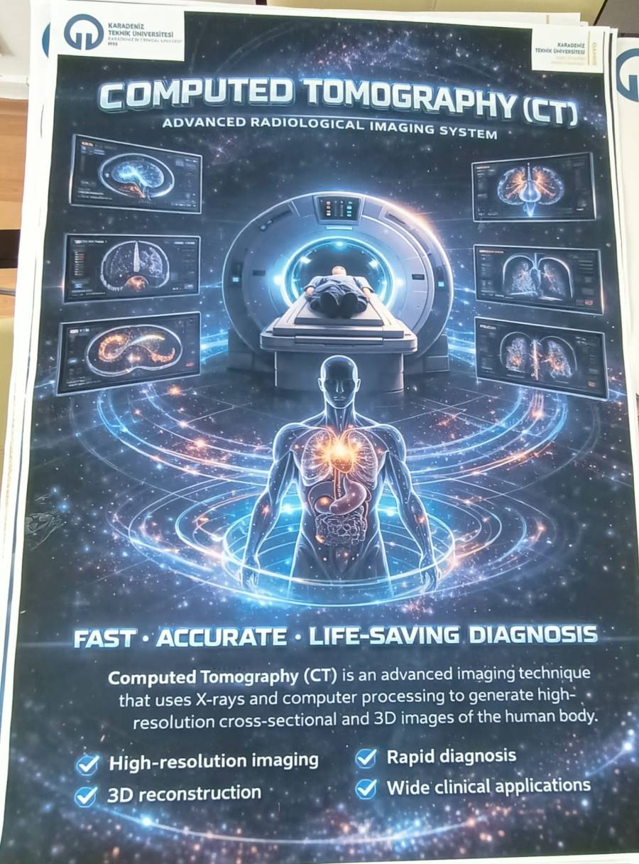 Sağlık Hizmetleri Meslek Yüksekokulu Tıbbi Görüntüleme Teknikleri Programı öğrencileri tarafından, Mesleki İngilizce dersi kapsamında radyoloji alanına yönelik İngilizce poster ve afiş sunum etkinliği düzenlendi. Etkinlik, 10 Nisan tarihinde D-4 salonunda saat 13.00–17.00 arasında gerçekleştirilmiş olup, öğrenciler hazırladıkları bilimsel içerikli posterleri İngilizce olarak sunarak hem mesleki terminoloji bilgilerini hem de sunum becerilerini geliştirme fırsatı bulmuştur. Gerçekleştirilen etkinlik, öğrencilerin alanlarına yönelik yabancı dil kullanımını teşvik etmesi, akademik ifade becerilerini güçlendirmesi ve mesleki gelişimlerine katkı sağlaması açısından önemli bir kazanım olmuştur.
