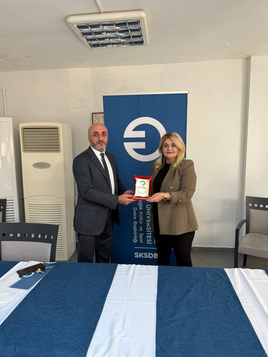 Daire Başkanı Ömer SALİMOĞLU’na personel tarafından takdim edilen teşekkür plaketi, Kültür Hizmetleri Koordinatörü Dr. Öğr. Üyesi Veysel ATASOY, Başkanlığımız personeli Şef Gülşen YAVUZ ve Şef Meltem KARAAHMET, Yemekhane Hizmetlerinde görevli Diyetisyen Fatıma GÜLZEHRA KANBER, Psikolojik Danışmanlık ve Rehberlik'te görevli Psikolog Tuğçe BORA YILMAZ, Öğrenci Kulüplerinde görevli Bilgisayar İşletmeni Eyüp YILDIRIM, Barınma Hizmetlerinde görevli Personel Onur YILDIRIM ve Teknik İşlerden sorumlu sözleşmeli personel Emrah YILMAZ’a belgeleri takdim edildi. Özverili çalışmalarından dolayı personelimize teşekkür eder, kendilerine başarılar dileriz.