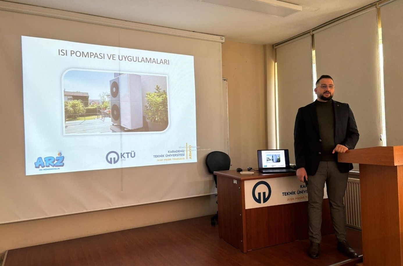 4 Aralık 2024 tarihinde Arsin Meslek Yüksekokulu kampüsünde “Isı Pompası ve Uygulamaları” konulu teknik seminer gerçekleştirilmiştir. Seminerde, alanında uzman bir mühendis ısı pompası teknolojilerinin çalışma prensiplerini, uygulama alanlarını ve enerji verimliliğine katkılarını detaylı şekilde açıklamıştır. Öğrenci ve personelin yoğun ilgi gösterdiği bu etkinlik, sürdürülebilir ve modern enerji çözümleri konusunda bilgi paylaşımını teşvik ederek SKA 7 – Erişilebilir ve Temiz Enerji hedefine doğrudan katkı sağlamıştır. (Kaynak)