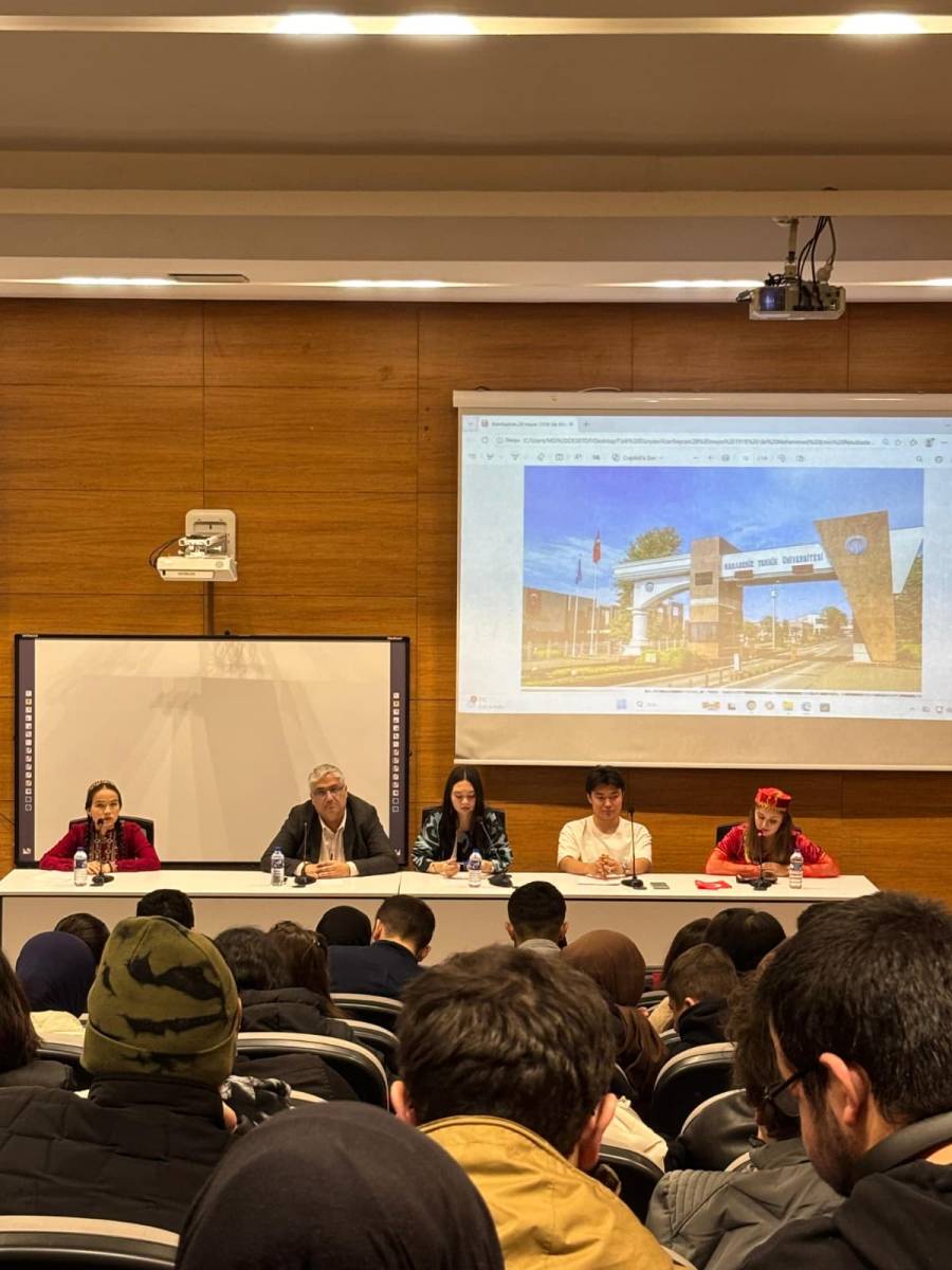 16.12.2025 tarihinde saat 14:30'da Türk Dünyasında gelen öğrencilerimizin sunumu ve Doç. Dr. Ahmet Köksal hocamızın moderatörlüğünde "Ev'den Irak'ta Ev'de Olmak Türk Dünyası Kardeşlik Toyu" faaliyeti gerçekleştirilmiştir.