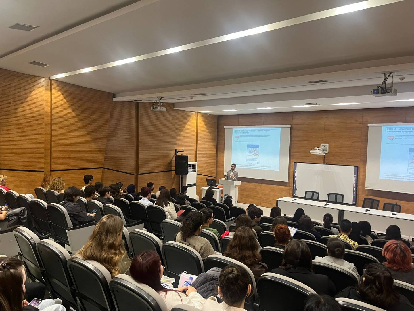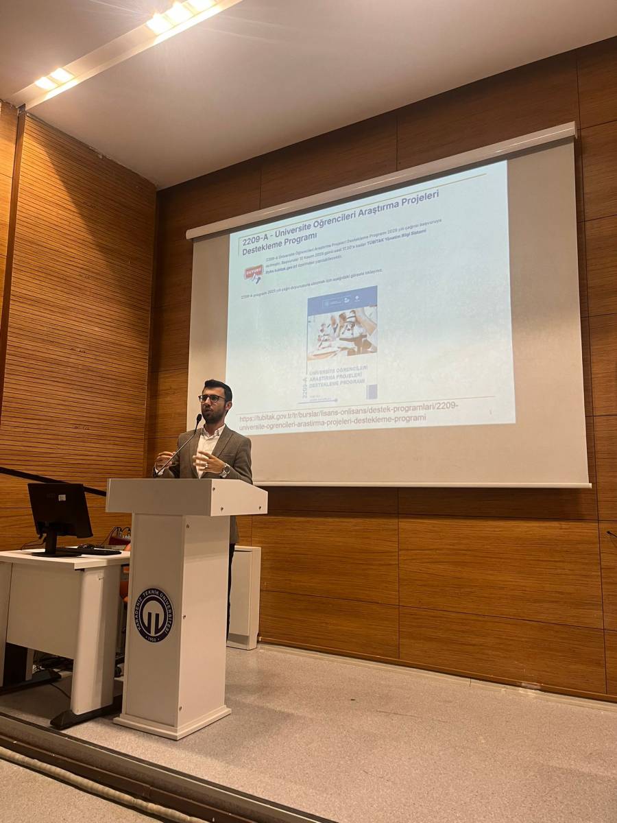 07.10.2025 tarihinde saat 14:00'da Burs ve Tübitak Proje Bilgilendirme Toplantısı komisyon üyesi hocalarımız tarafından sunulmuş, lisans ve lisansüstü öğrencilerimizin de katılımıyla verimli bir şekilde gerçekleştirilmiştir.
