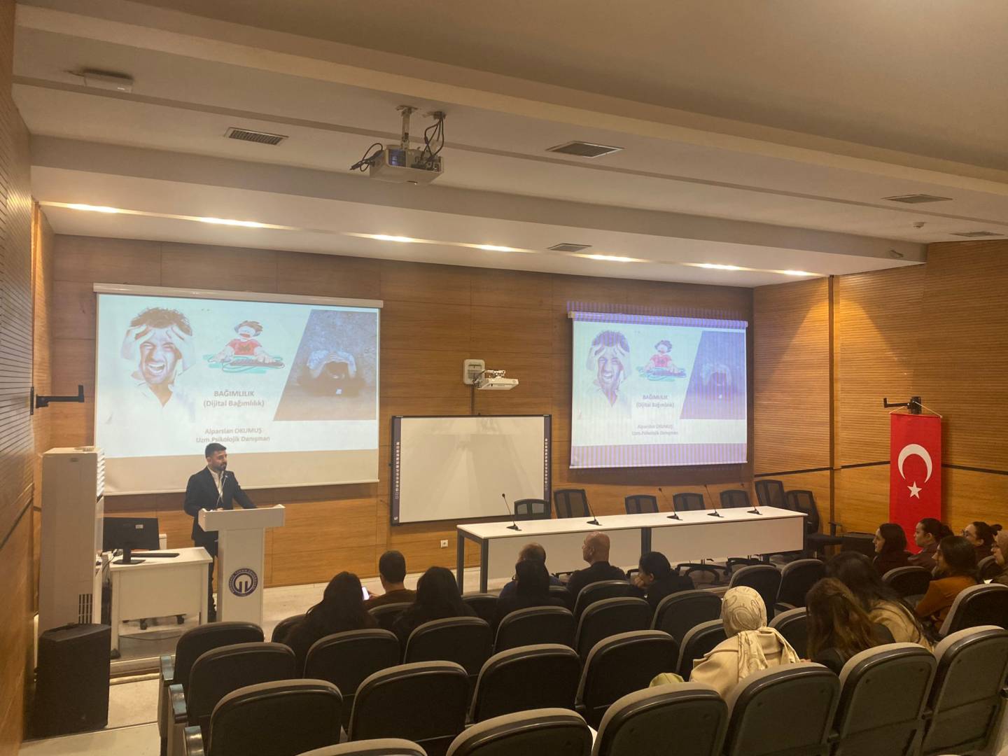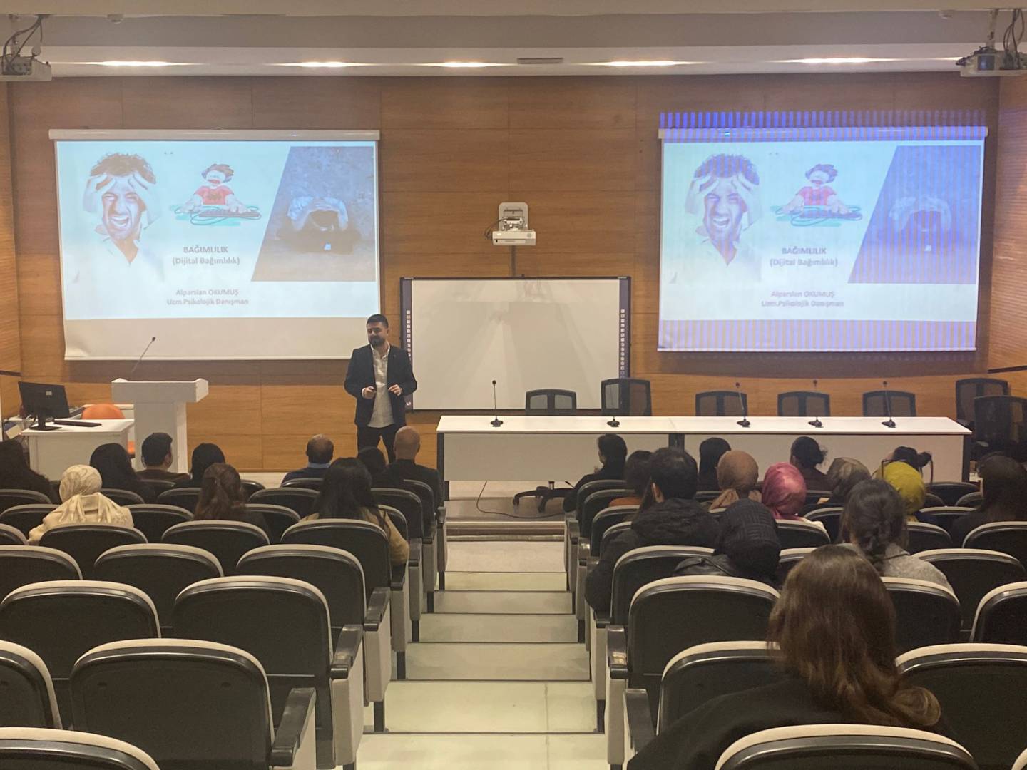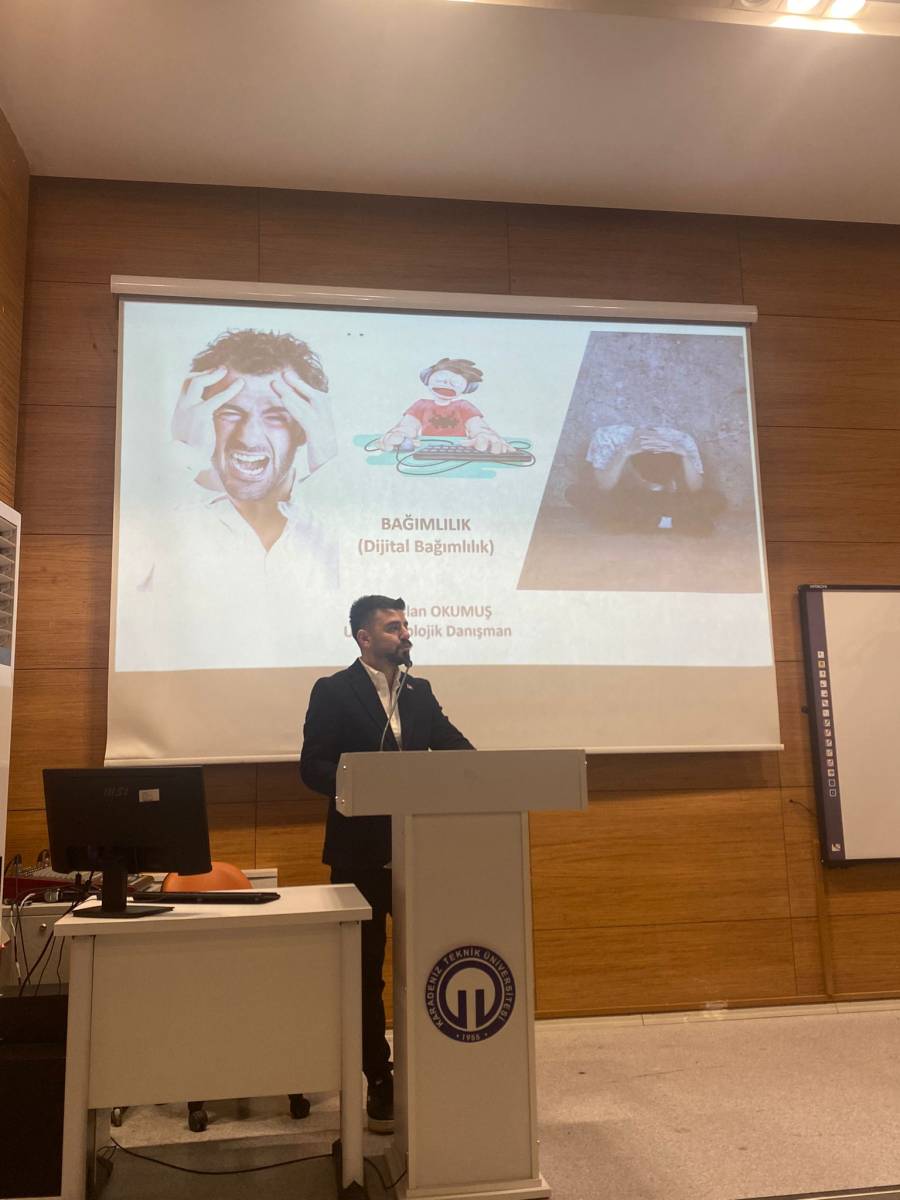 Uzm. Psikolojik Danışman ve Yeşilay TBM Formatörü Alparslan Okumuş’un konuşmacı olarak katıldığı “Dijital Bağımlılık” konulu etkinlik, 15 Nisan 2026 tarihinde saat 14.30’da Hikmet Öksüz Konferans Salonu’nda gerçekleştirildi.