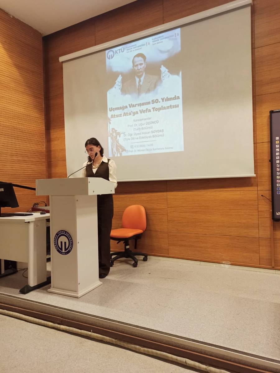 Bölümümüz ve Tarih bölümünün ortak olarak hazırladığı ''Uçmağa Varışının 50. Yılında Atsız Ata'ya Vefa Toplantısı'' başlıklı etkinlik, 11.12.2025 tarihinde Hikmet Öksüz Amfisi'nde gerçekleştirilmiştir.