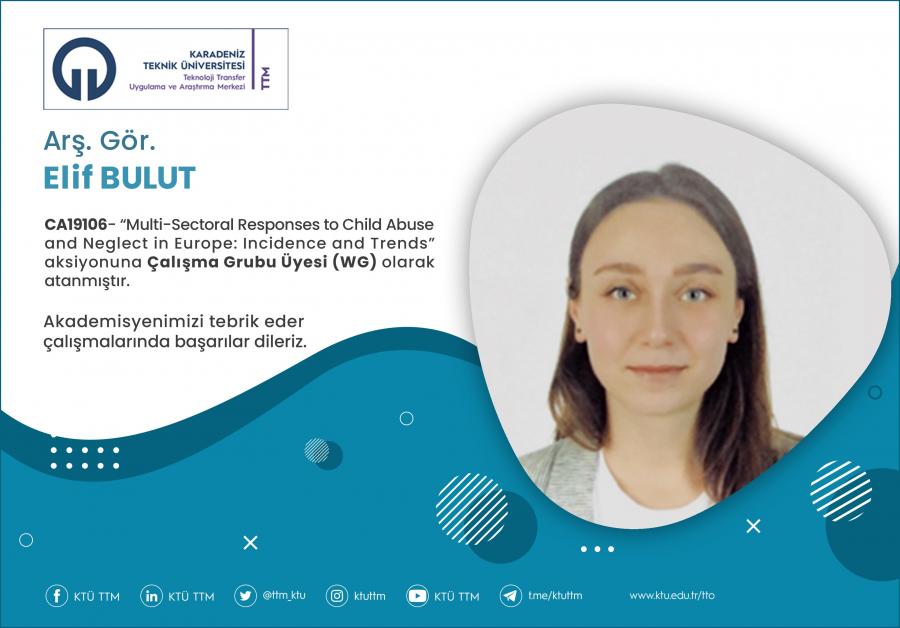 Üniversitemiz Sağlık Bilimleri Enstitüsü - öğretim üyesi Arş.Gör. Elif BULUT, COST Programı’nın “CA19106 - Multi-Sectoral Responses to Child Abuse and Neglect in Europe: Incidence and Trends” aksiyona Çalışma Grubu Üyesi (WG) olarak atanmıştır.