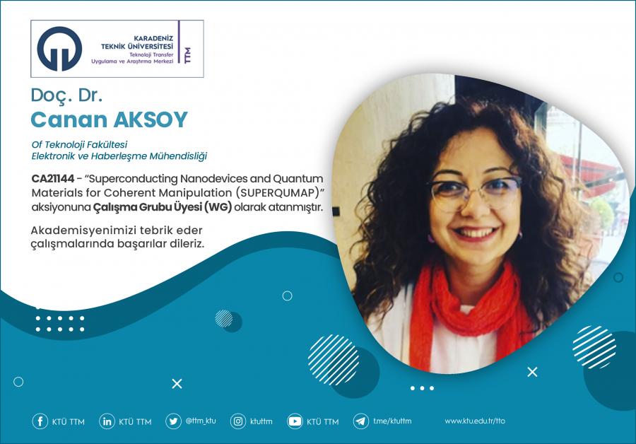 Üniversitemiz Of Teknoloji Fakültesi Elektronik ve Haberleşme Mühendisliği Bölümü öğretim üyesi Doç. Dr. Canan AKSOY, COST Programı’nın “CA21144 - Superconducting Nanodevices and Quantum Materials for Coherent Manipulation (SUPERQUMAP)” aksiyonuna Çalışma Grubu Üyesi (WG) olarak atanmıştır.