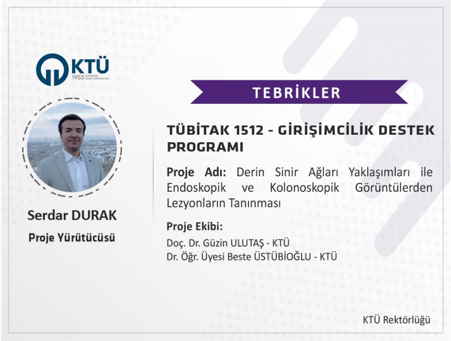 Üniversitemiz bünyesinde Tıp Fakültesi'nden Gastroenteroloji Uzmanlığı’nı alan Serdar DURAK’ın “Derin Sinir Ağları Yaklaşımları ile Endoskopik ve Kolonoskopik Görüntülerden Lezyonların Tanınması” başlıklı projesi TÜBİTAK 1512 Programı kapsamında desteklendi ve girişimcimiz şirketini başarılı bir şekilde kurdu.