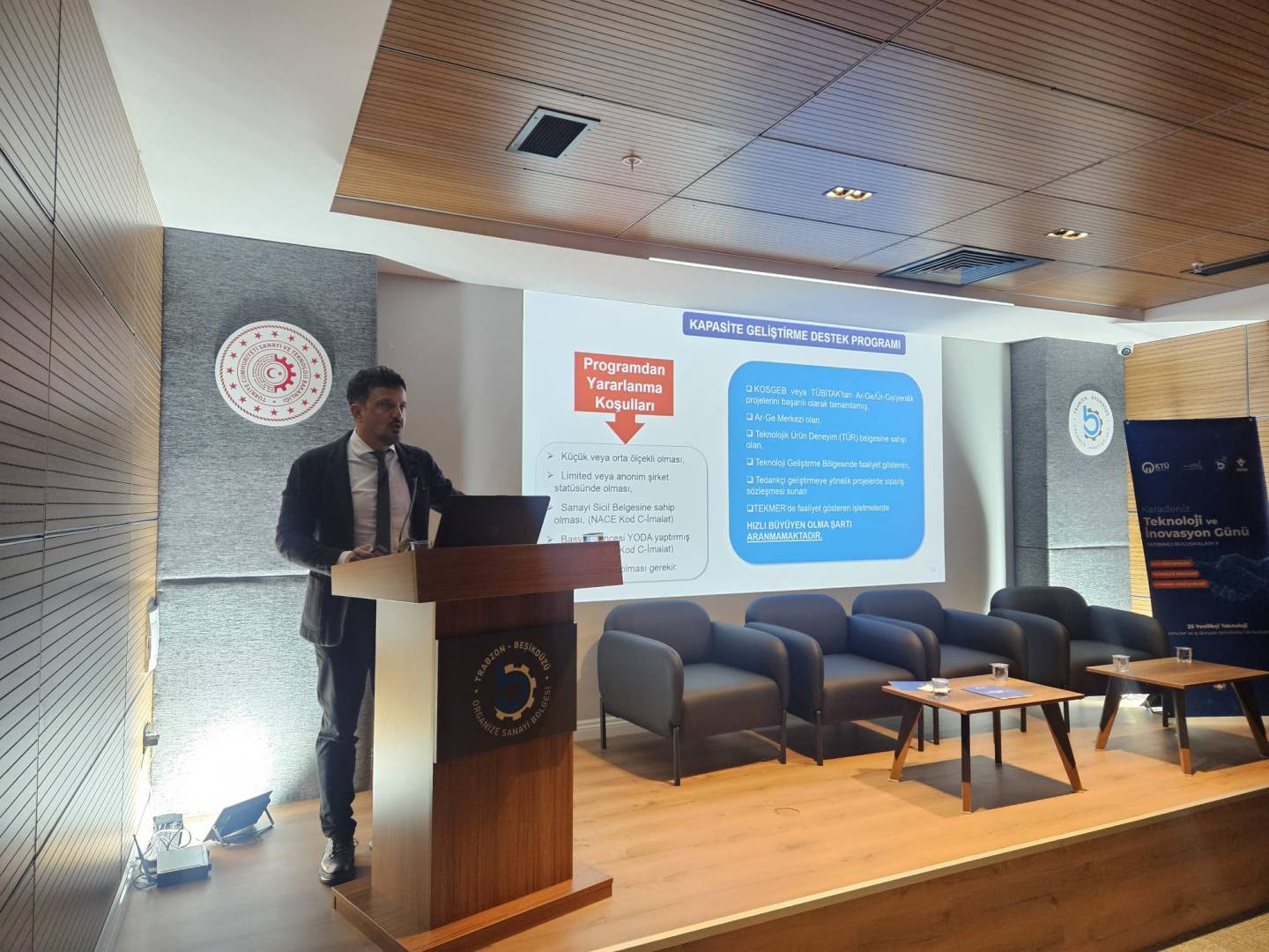 Diğer seminer oturumunda ise KOSGEB KOBİ Uzmanı Kürşat MAZLUM’un konuşmacı olduğu “KOSGEB Destek Programları” başlıklı sunum düzenlendi. Seminerde girişimcilere ve işletmelere sunulan destek mekanizmaları, başvuru süreçleri ile desteklerden yararlanma koşulları hakkında kapsamlı bilgiler aktarıldı.