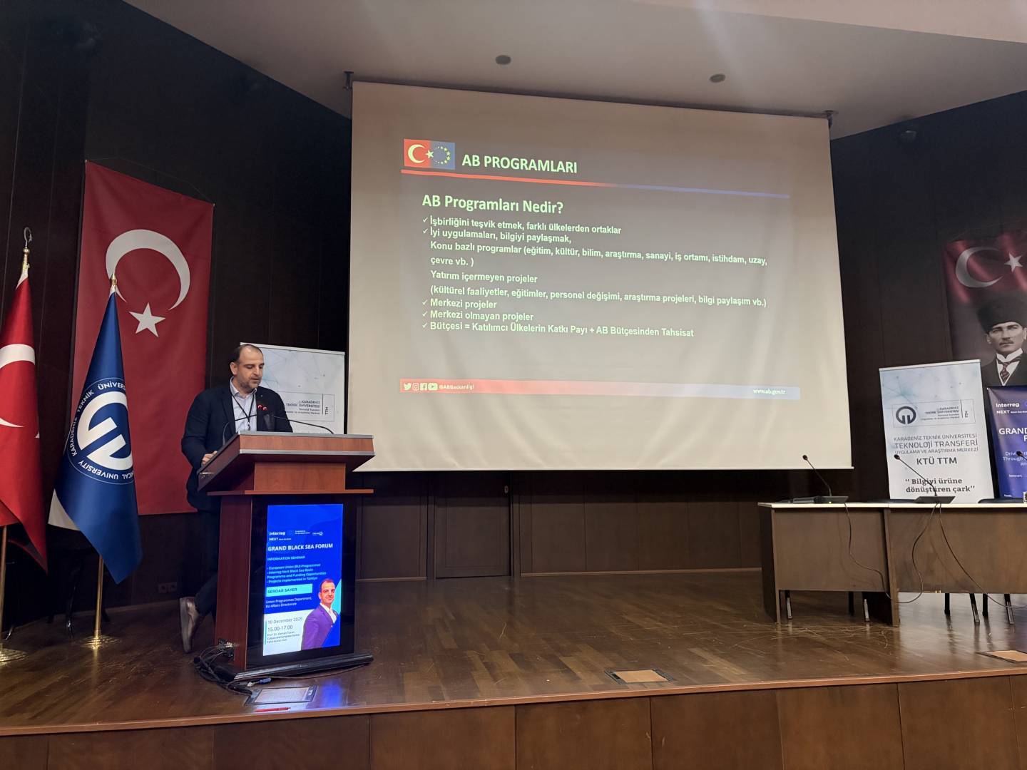 Forumun ilk günü, KTÜ Rektör Yardımcısı Prof. Dr. Ömer Faruk URSAVAŞ tarafından gerçekleştirilen açılış konuşmalarının ardından KTÜ TTM Müdürü Öğr. Gör. Emrah AYVAZ, T3N-BSB Projesi kapsamında yürütülen faaliyetler ve elde edilen çıktılara ilişkin bir sunum gerçekleştirdi.