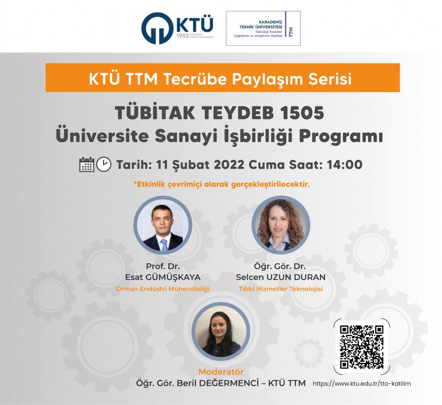 Tecrübe Paylaşım Serisi’nin beşincisi “TÜBİTAK TEYDEB 1505 Üniversite Sanayi İşbirliği Programı Tecrübe Paylaşımı Etkinliği” 11 Şubat Cuma Günü Saat: 14:00’da düzenlenecektir.