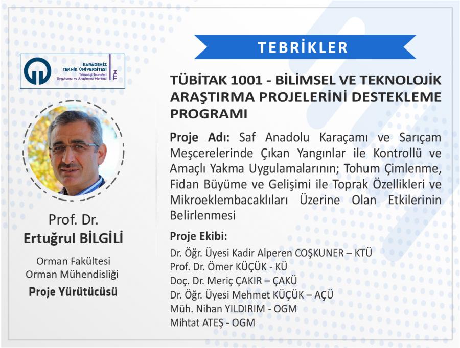 TÜBİTAK "1001-Bilimsel ve Teknolojik Araştırma Projelerini Destekleme Programı” kapsamında 2022 yılı 1. Dönemi’nde Üniversitemizden 51 proje başvurusunda bulunulmuş ve desteklenmeye hak kazanan 7 projeyle KTÜ; projeleri desteklenen 96 üniversite arasında 12. sırada yer almıştır. Üniversitemizden yapılan 3 proje önerisinin ise bir sonraki dönemi beklemeden başvuru yapılabilmesine karar verilmiştir.