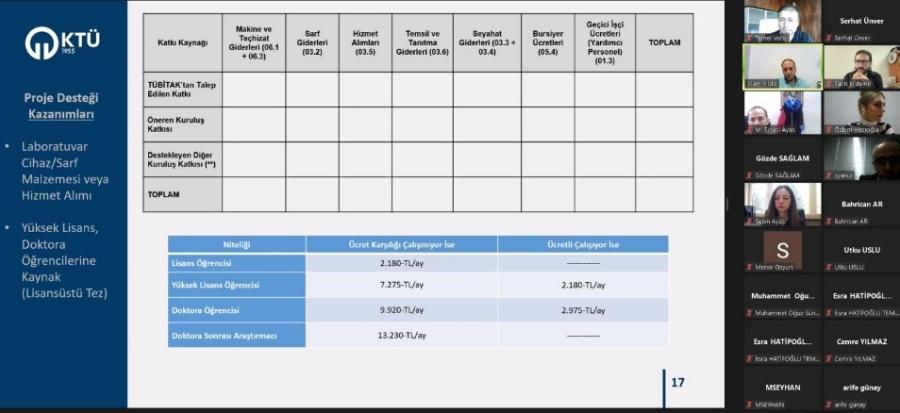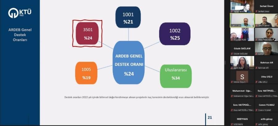 KTÜ TTM tarafından Üniversitemiz Mühendislik Fakültesi akademisyenlerine yönelik; Öğr. Gör. İslam YILDIZ’ın TÜBİTAK 3501 - Kariyer Geliştirme Programı tanıtımı ve yapılan değişiklerle ilgili bir sunum gerçekleştirdiği çevrimiçi bilgilendirme etkinliği düzenlendi.