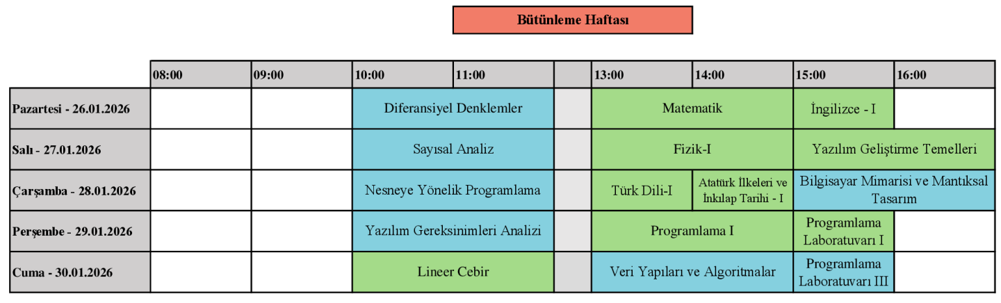 2025-2026 Güz Dönemi final ve bütünleme sınavlarında gün ve saat değişikliği yapılmıştır. Güncel programa buradan ulaşabilirsiniz.