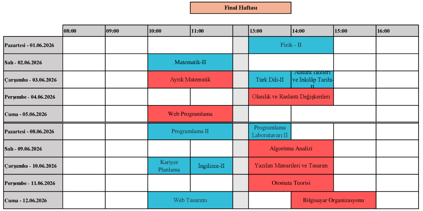 2025-2026 yılı bahar dönemi sınav programları ilan edilmiştir. Öğrencilerimize sınavlarında başarılar dileriz.